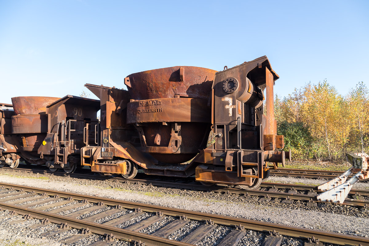 Das produzierte Roheisen wandert dann für den nächsten Prozess ins Stahlwerk, genauer gesagt in den Konverter. Die Schlacke wird abgefahren und in Schlackenbeeten abgekippt. Daraus entsteht