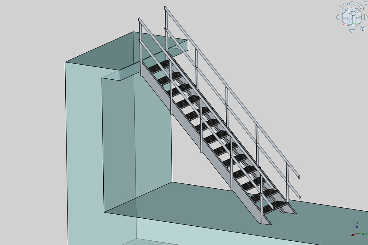 lassen sich auf diese Weise Höhe, Breite und Steigung der Treppe, die Anzahl der Stufen und der Geländerstützen und weitere Eigenschaften verändern. Damit können schnell Treppen in gewünschten