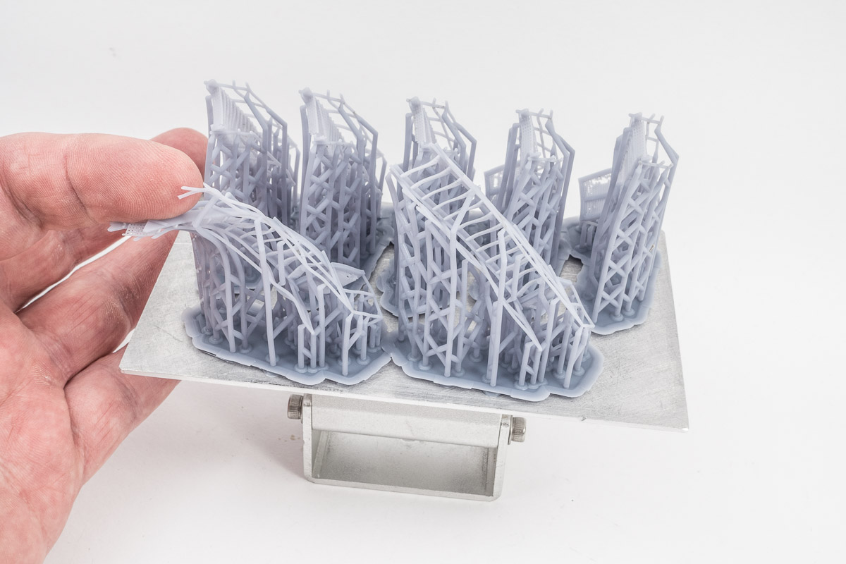 Versuche nicht erfolgreich. Ich vermute, daß dieses Material etwas weicher und weniger spröde sein soll. Bei den dünnen Strukturen waren die Drucklinge gummiartig und