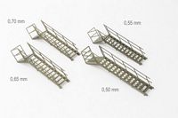 Ein Durchmesser von 0,65 mm hat sich für mich als guten Kompromiß herausgestellt. Das passt gut für Industrietreppen, die auch beim Vorbild gerne kräftig gebaut werden.