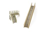 da hatte ich mich entsprechend eingedeckt. Schließlich kamen dann die Industrietreppen als Lasercut-Bausätze von Joswood: Diese waren etwas filigraner als die Spritzguß-Treppen