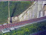 und Farbgebung sorgt ein Treppengeländer aus Messingprofilen für den Abschluß. ie Unterführung der Strecke unterhalb Hüttenheim Bf. ist nun fertig. Das Tragseil der Oberleitung ist