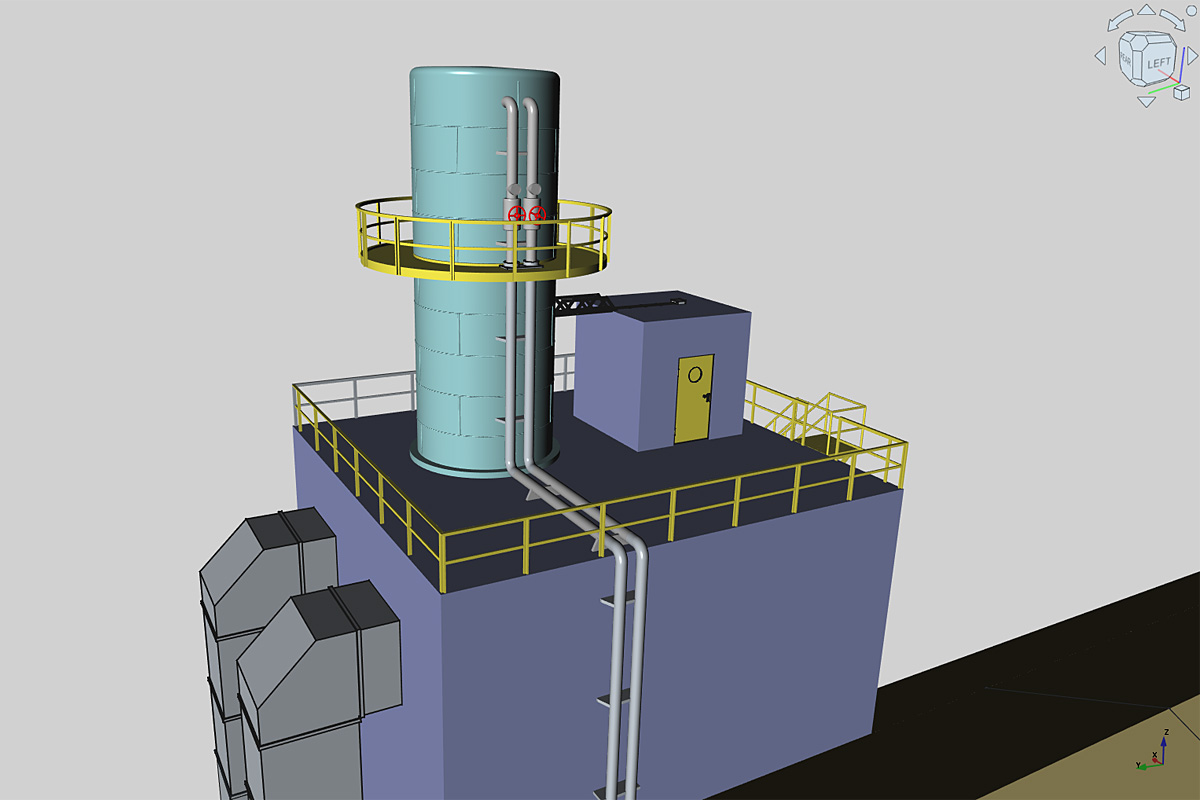 bei der Konstruktion prüfen zu können, habe ich ein 3D-Modell der gesamten Konverterhalle mit FreeCad erstellt. Damit können die neuen Teile bereits virtuell an ihren späteren Platz