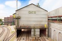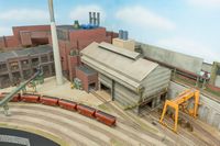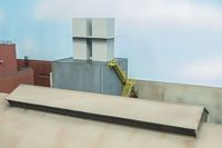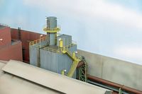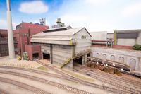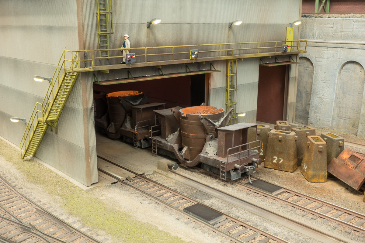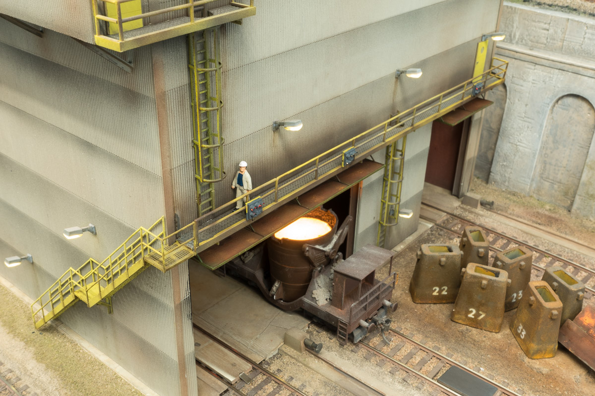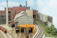 Auf der rechten Seite der Stahlwerk-Komplexes befindet sich die Konverterhalle. Grundlage war der Walthers Bausatz 933-3052 "Rolling Mill" (baugleich mit Trix 66121 "Walzwerk").