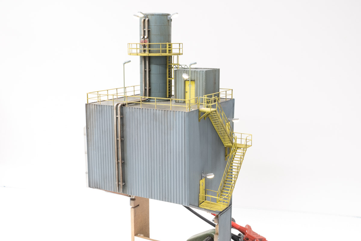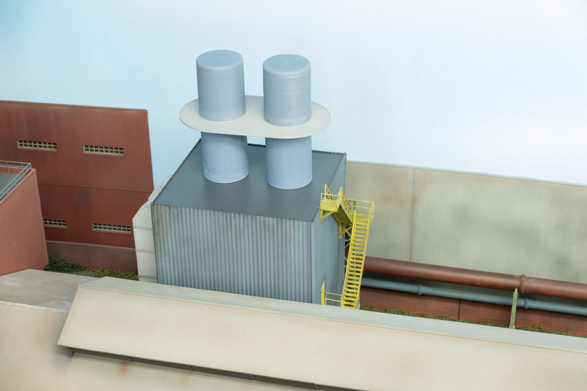 Die Treppe wurde mit dem Anycubic-Drucker in Resin gefertigt, ebenfalls Verlängerungen für die Lüftungsschächte, die vom Trix Bausatz des Kraftwerks übriggeblieben waren..