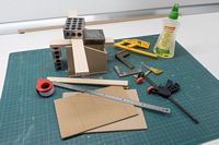 späteren Klebeflächen glatt abgeschliffen. Die vorbereiteten Wandteile wurden dann mit Pattex-Kontaktkleber direkt auf die Holzkonstruktion geklebt. Sie konnten leicht