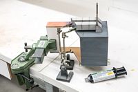 Die Resinbauteile wurden grundiert, lackiert und patiniert. Anschließend habe ich die Bauteile mit 2K-Kleber an den richtigen Stellen festgeklebt. Bei den Lüftungsschächten