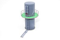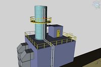 Auch bei der Konverterhalle habe ich die Detaillierung etwas verfeinert. Die vorhandenen Laufstege wurden um eine lange Trepppe und Zugangstüren ergänzt. Um Abmessungen und