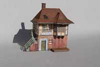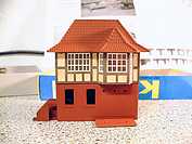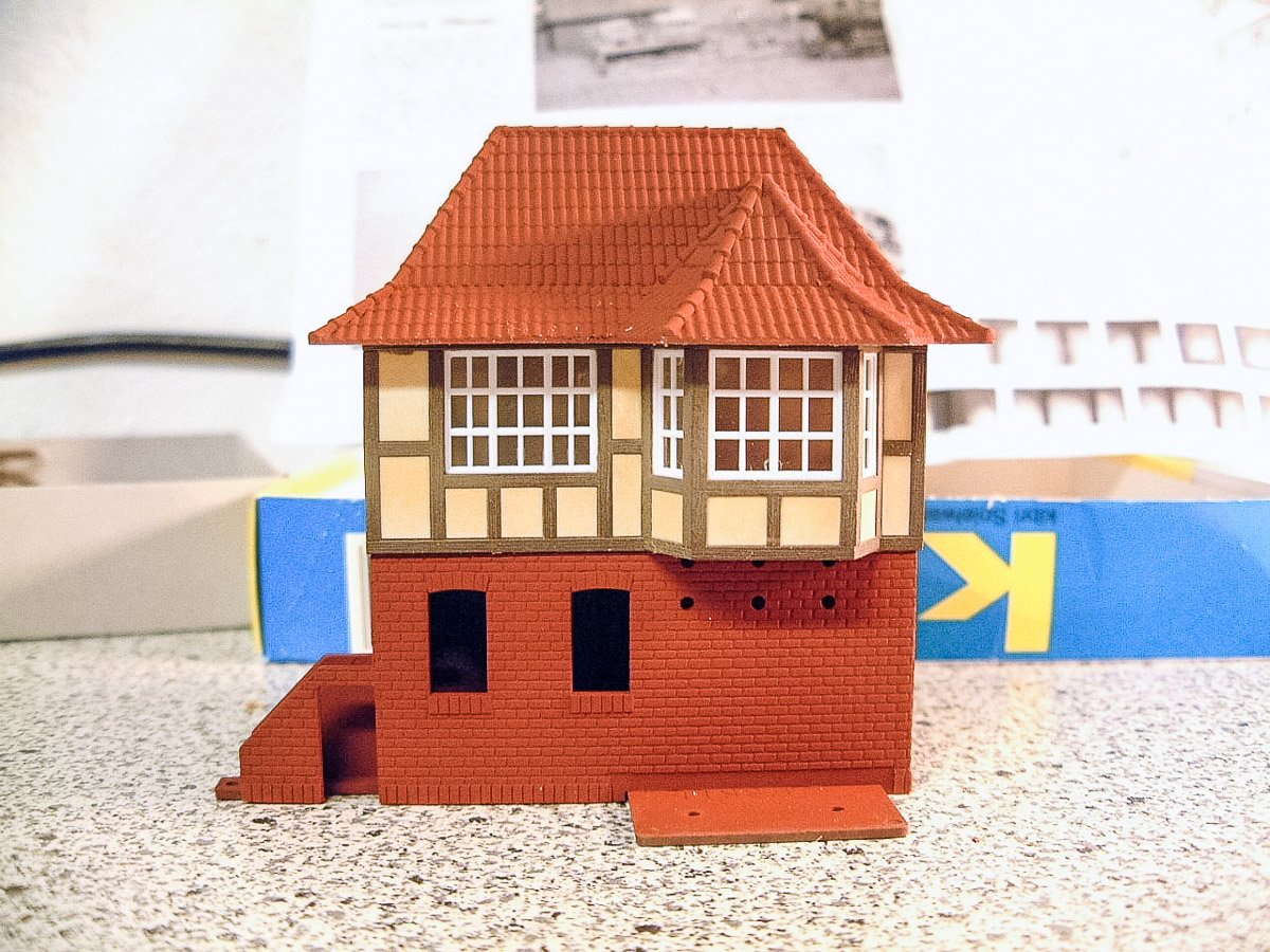 Das Kibri Stellwerk sollte in ein stillgelegtes Gebäude verwandelt werden. Dazu wurde es umgestaltet: Der Erker im Obergeschoß wurde mit Brettern verkleidet,