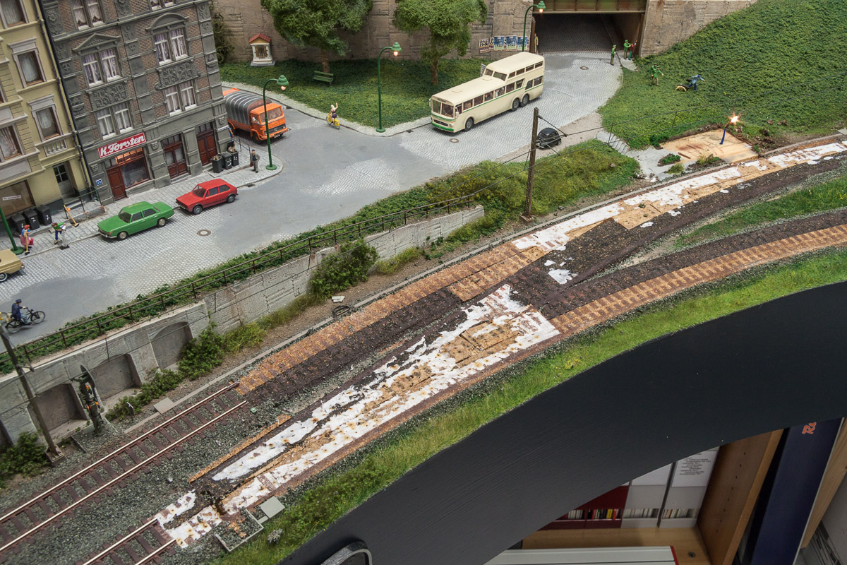 Statt Reparatur hatte ich mich für Rückbau entschieden - ganz wie bei der Bundesbahn in der Epoche IV. Die Gleise wurden also mit Schraubenzieher und Kneifzange herausgerupft.