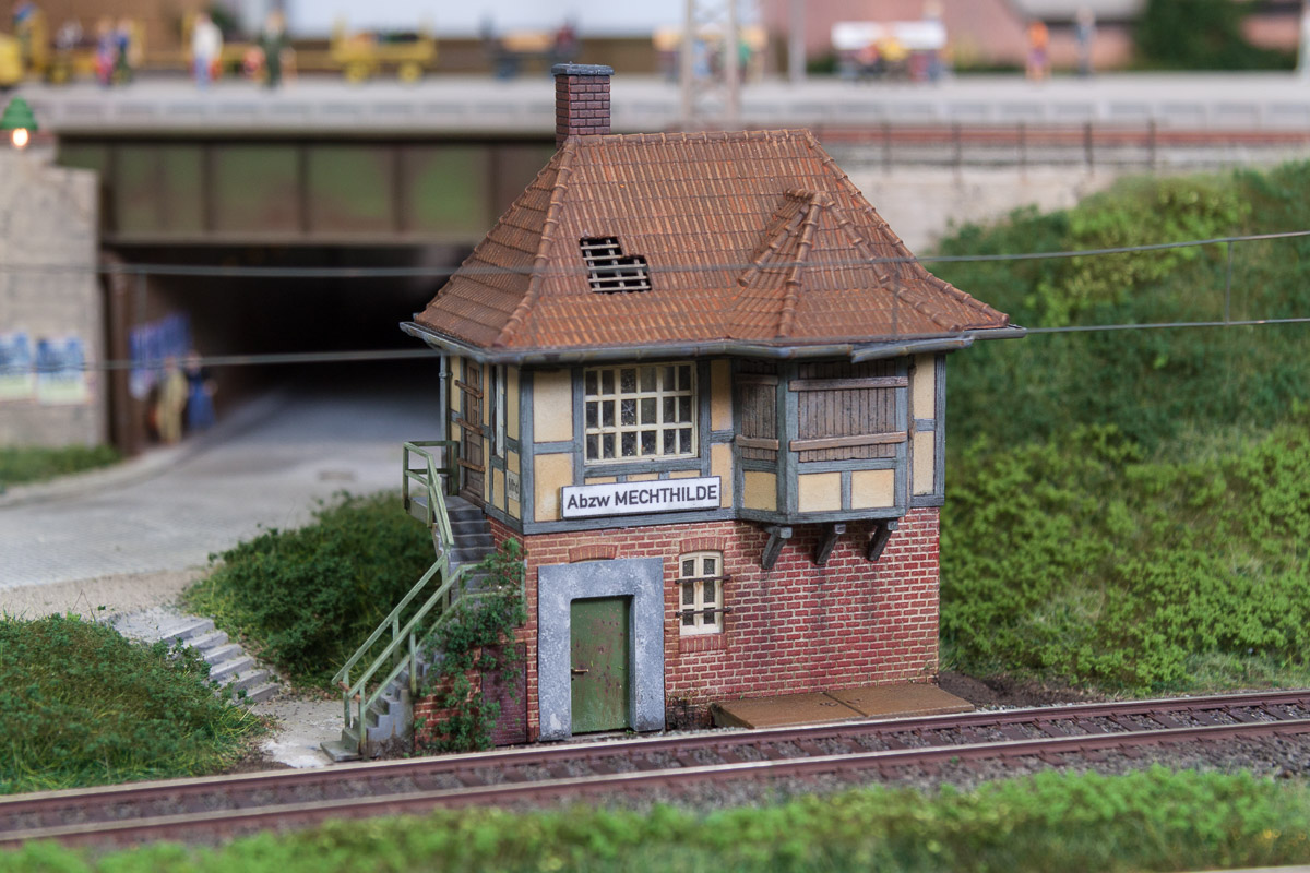 Das Stellwerk "Abzw MECHTHILDE" entstand aus dem Kibri-Bausatz 9486 "Rottershausen". Stellwerke in Fachwerkbauweise aus der Zeit vor dem ersten Weltkrieg hat man noch oft im Ruhrgebiet