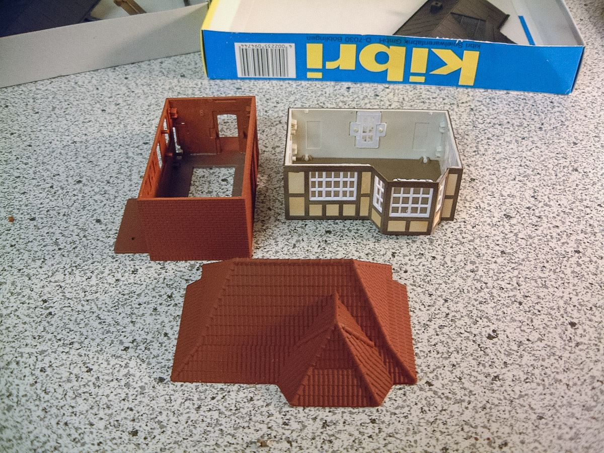 Der Kibri-Bausatz ist in Stecktechnik ausgeführt und die Paßgenauigkeit, auch an den Gebäudeecken ist ausgezeichnet. Ich habe keine Veränderungen vorgenommen. Das Untergeschoß wurde