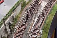dünne Polystyrolstückchen, die an der Kurvenaußenseite unter die Schwellenenden geschoben wurden. Wichtig war dabei ein gleitender Übergang von der normalen