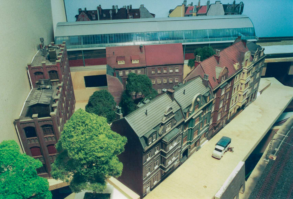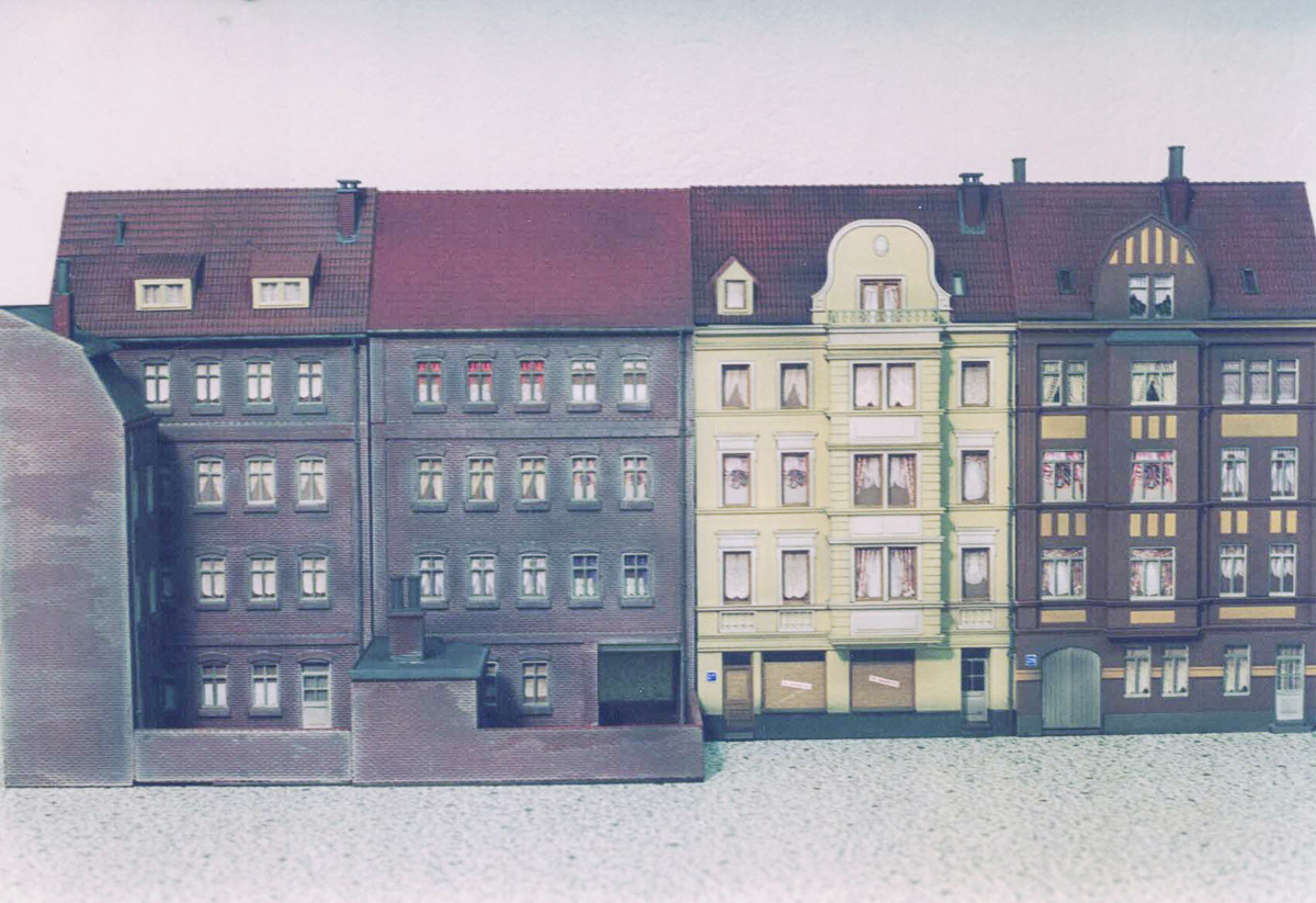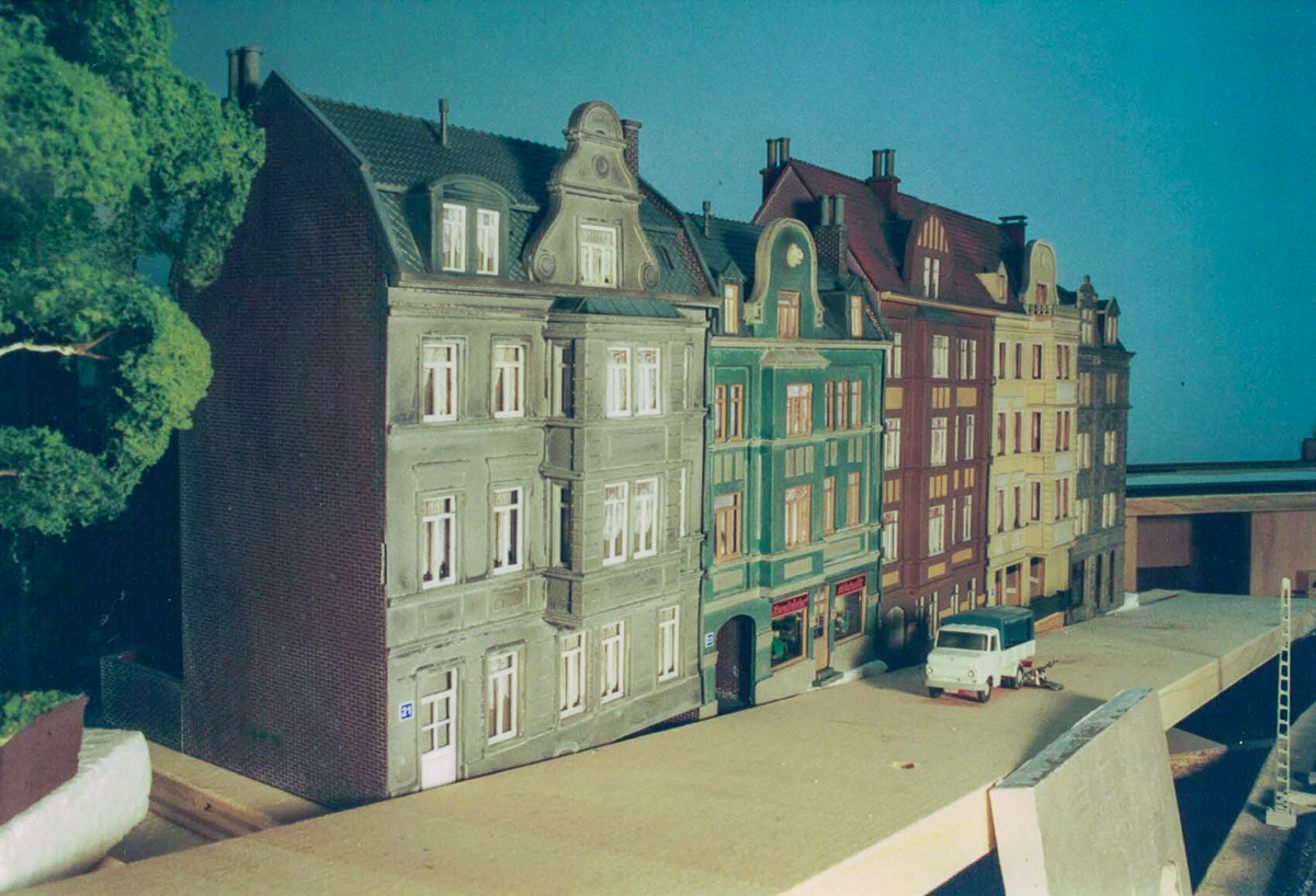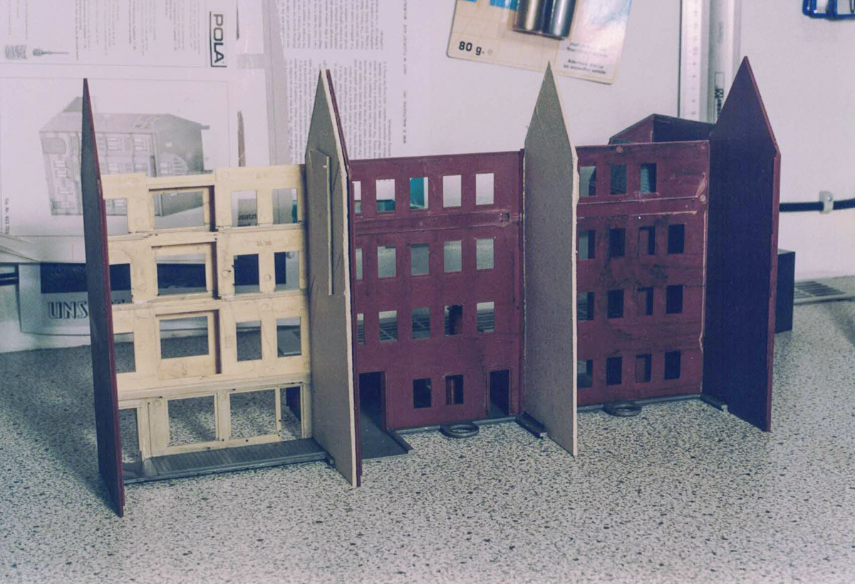 werden mussten. Aber das Provisorium war wichtig, um die tatsächliche 3D-Wirkung zu überprüfen, die aus dem Grundrißplan nicht hervorging. Die Rückseite der Häuser ist nur teilweise durchgestaltet,
