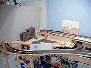 Die Aufstellung erfolgte im ersten Schritt provisorisch, da zunächst die dahinter liegenden Anlagenteile - Bahnhofshalle, Straße entlang des Bahndammes, Hintergrundkulisse - fertiggestellt