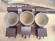 die entsprechenden Bereiche, besonders die Innenseite der Pfanne, mit hellbeiger Farbe lackiert. Auf die noch nasse Farbe wurde dann "echte Schlacke" (Asche vom Gartengrill)