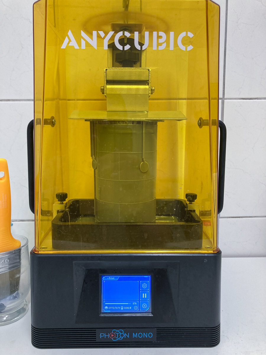 Anycubic Mono in Resin gedruckt. Dabei kam der Anycubic buchstäblich an seine Grenzen, der Bauraum passt mit 80 mm Tiefe so gerade für den Kuppeldurchmesser von 80 mm. Das Ergebnis war im Vergleich