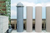 moderneren Konstruktionen aus Alublechen und rechts der westlichen Entstaubung. Der Durchmesser beträgt 7 Meter und die Gesamthöhe 30 Meter, so jedenfalls laut einer Planungszeichnung