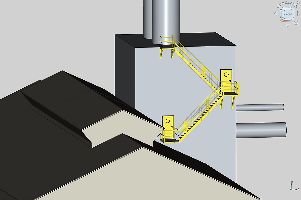 Die Laufstege an der Front sollten mit Zugangstüren und einer seitlichen Treppe erweitert werden. Natürlich sind diese Bauteile per 3D-Druck entstanden. Um die Passform schon