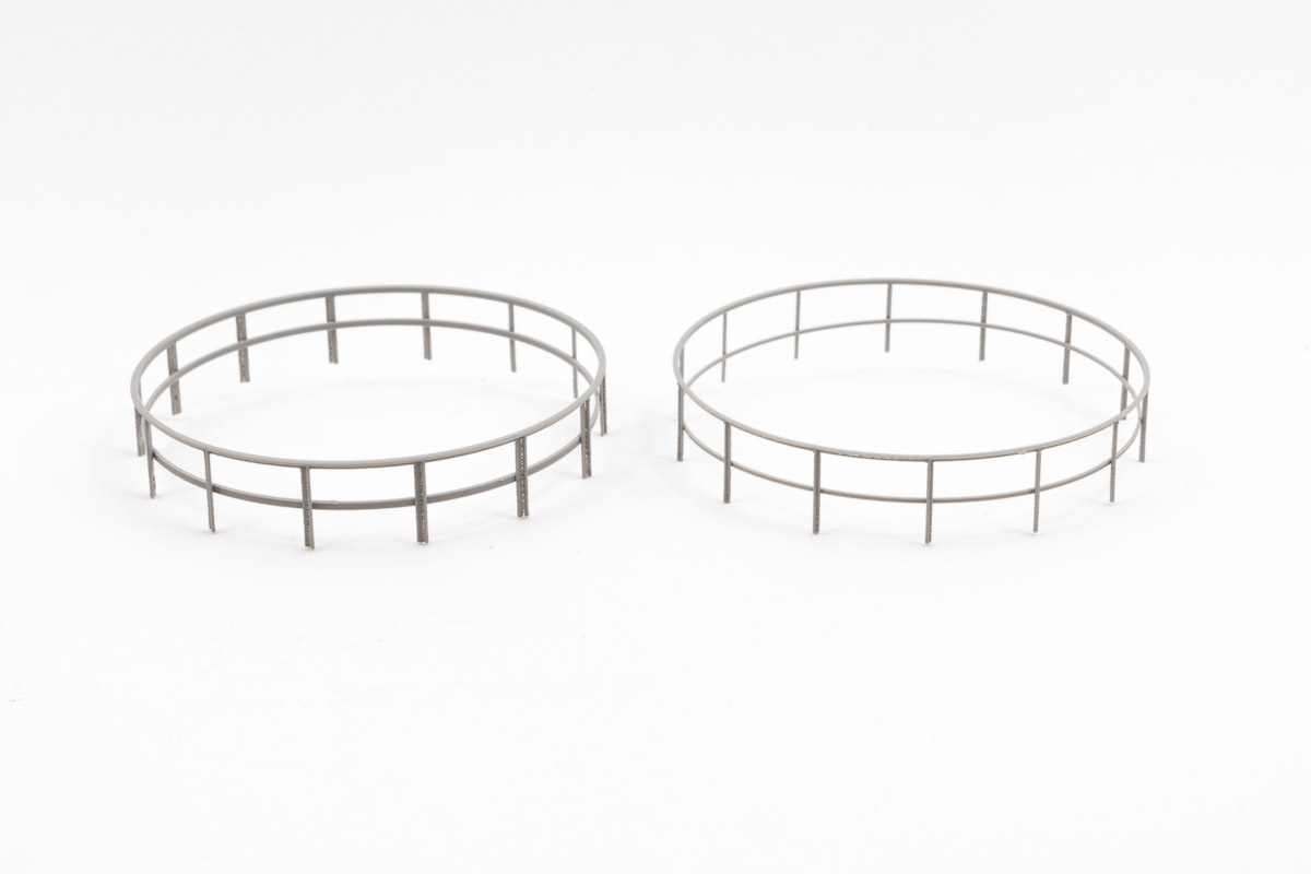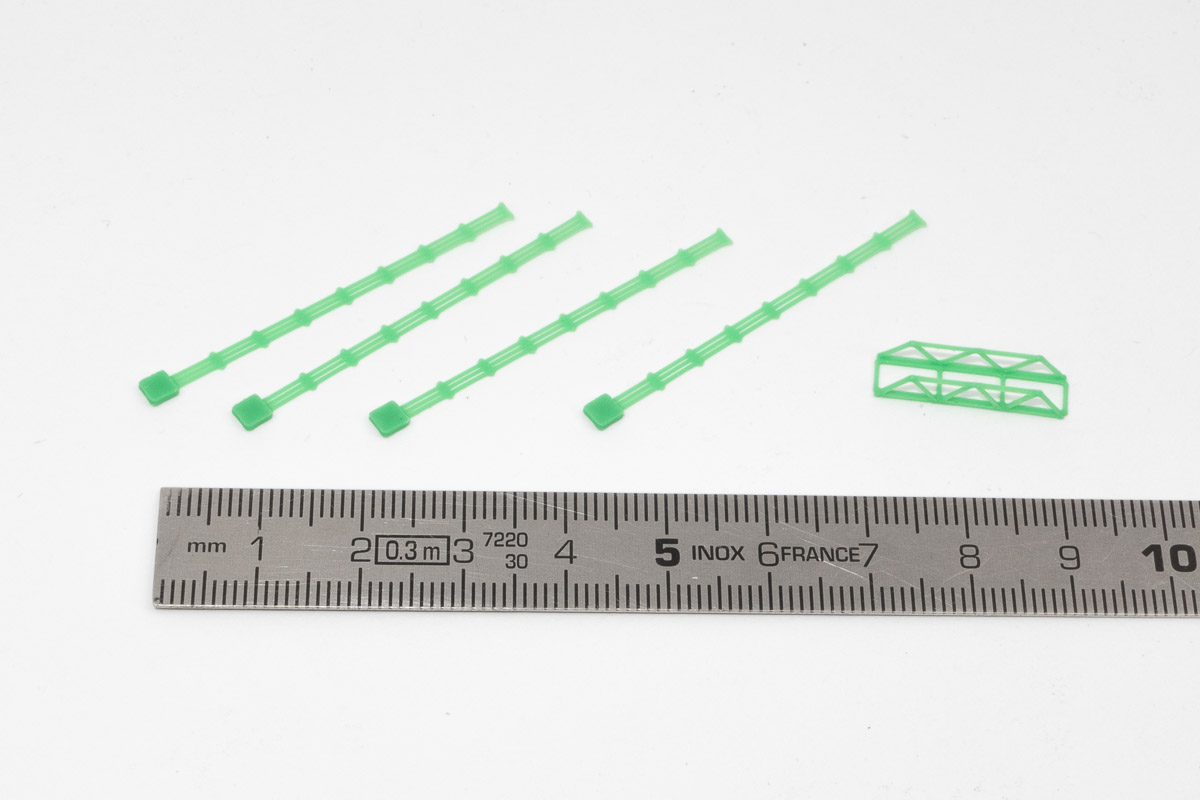 Das runde Türmchen mit den Scheißnähten und die Rohrleitungen habe ich mit dem alten Anycubic Resindrucker angefertig. Die filigranen Geländer, die
