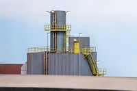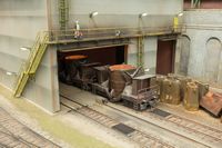 Auf der rechten Seite der Stahlwerk-Komplexes befindet sich die Konverterhalle. Grundlage war der Walthers Bausatz 933-3052 "Rolling Mill" (baugleich mit Trix 66121 "Walzwerk").