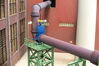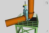 Die Rohrleitung über die Brücke mit Absperrschieber und dem senkrechten Rochstück bilden ein gemeinsames Bauteile. Zwei kleine Magnete positionieren es auf der Rohrbrücke und