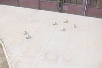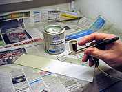 damit sie richtig deckt. Die zahlreichen "Betonplatten" wurden zum Trocknen gelegt, bis die Farbe ausgehärtet war. Anschließend wurde die Deckschicht mit Pattex auf das