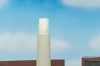 Der Fabrikschornstein, der zum Walters Kraftwerk-Bausatz gehörte, hat lange provisorisch auf dem Vorplatz herumgestanden. Jetzt war es an der Zeit, für einen korrekten Einbau zu