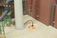ein kleiner Zapfen definiert die genaue Lage auf der Plattform. Der obere Segmentbogen und das anschließende Rohr ins Gebäude lässt sich aufstecken und ausrichten, es ruht am