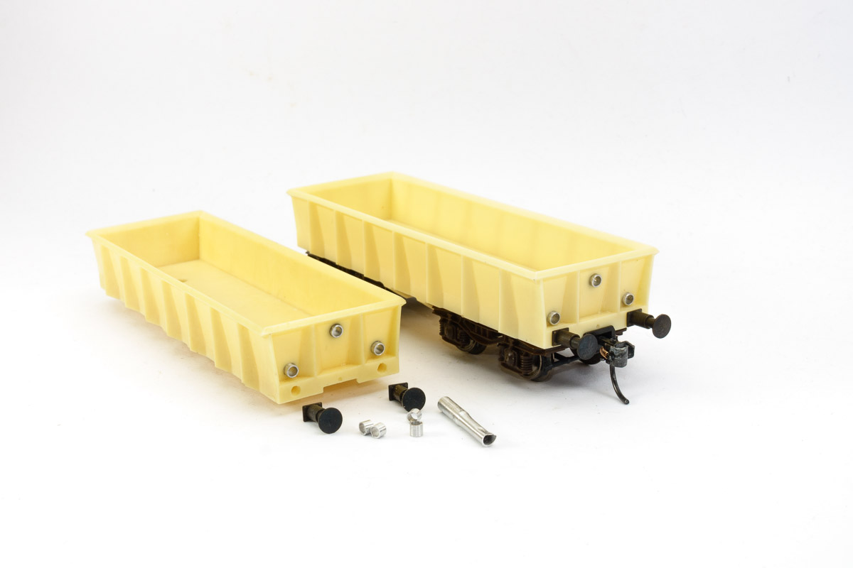 Ausgangspunkt waren Wagenkästen aus Resin-Guß, die mir das niederländische Modellbau-Genie Floris Dilz freundlicherweise überlassen hatte. Weitere Zutaten waren Drehgestelle