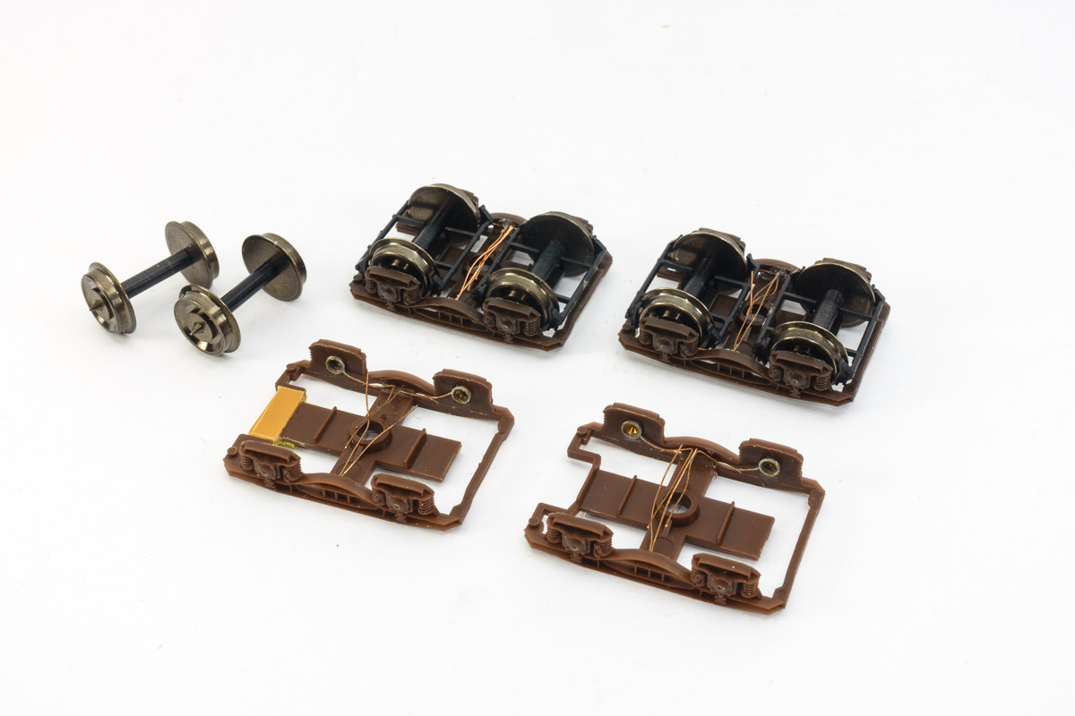 Die Drehgestelle von Klein Modellbahn wurden mit Achslagern von Peho ausgestattet, damit möglichst viele Stromabnahmepunkte entstanden. Die dazu nötigen