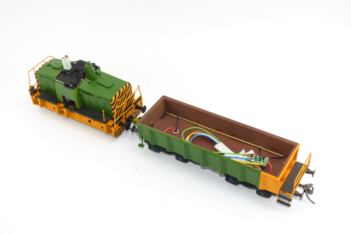 Im normalen Betrieb werden die Gespanne aus Lok und Bremswagen nicht getrennt, zur einfachen Bedienung sind die Dekoder auf die gleiche Digitaladresse wie die Loks eingestellt.