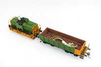 die kleine Rangierlok. Die offenen Roheisenpfannen von Trix sind hingegen zu schwergängig, da müssen halt andere Maschinen an die Arbeit. Schwerpunkt für die